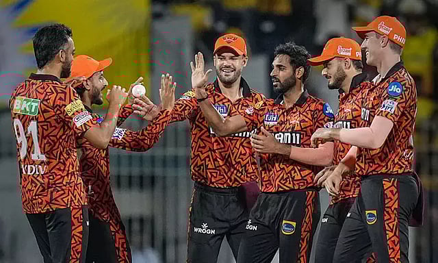 அனல் பறக்க நடந்து வரும் 17-வது ஐ.பி.எல். சீசனில் நேற்று 2 லீக் ஆட்டங்கள் நடைபெற்றன. இதில் சென்னை சேப்பாக்கம் மைதானத்தில் நடைபெற்ற ஆட்டத்தில் கெய்க்வாட் தலைமையிலான சென்னை சூப்பர் கிங்சும், கம்மின்ஸ் தலைமையிலான சன்ரைசர்ஸ் ஐதராபாத் அணியும் மோதின.
