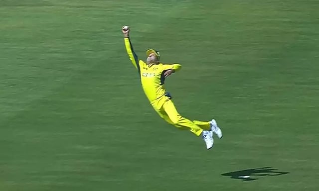 அப்போது 30 யார்ட் திசையில் பீல்டிங் செய்து கொண்டிருந்த அலெக்ஸ் கேரி அந்த பந்தை அபாரமாக கேட்ச் பிடித்து ஆச்சரியப்படுத்தினார். அலெக்ஸ் கேரியின் இந்த கேட்ச்சை கண்ட அனைவரும் ஒருகணம் ஆச்சரியத்தில் ஆழ்ந்தனர்.
