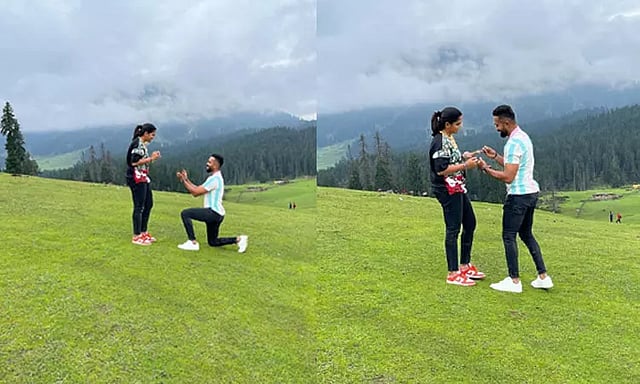 இதுபற்றி, அர்ஜுன் தனது இன்ஸ்டாகிராமில் வெளியிட்டுள்ள புகைப்படம் ஒன்றில், வேதா கிருஷ்ணமூர்த்தியின் முன் மண்டியிட்டு தனது காதலை வெளிப்படுத்துகிறார். பின்னர் அவருக்கு மோதிரம் அணிவிக்கிறார்.
