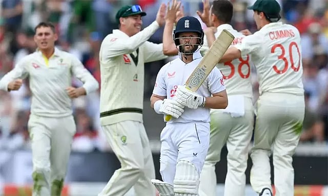 பின்னர் இங்கிலாந்தின் முதல் இன்னிங்சை ஜாக் கிராவ்லியும், பென் டக்கெட்டும் தொடங்கினர். ஆஸ்திரேலியாவின் பந்து வீச்சை திறம்பட சமாளித்த இவர்கள் இங்கிலாந்துக்கு வலுவான அடித்தளம் அமைத்து கொடுத்தனர். ஸ்கோர் 91-ஐ எட்டிய போது கிராவ்லி (48 ரன்) நாதன் லயனின் சுழற்பந்து வீச்சில் ஸ்டம்பிங் செய்யப்பட்டார். நாதன் லயன் டெஸ்ட் கிரிக்கெட்டில் வீழ்த்திய 496-வது விக்கெட்டாகும்.