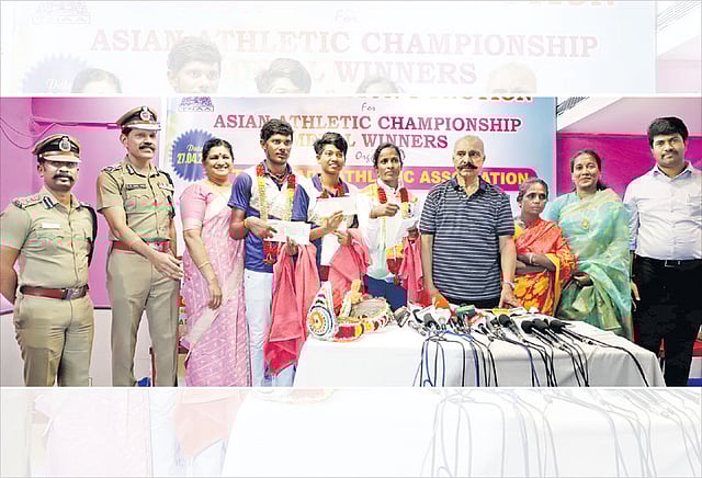 இதேபோல் ஹாங்காங்கில் கடந்த மாதம் நடந்த ஆசிய இளையோர் தடகள போட்டியில் தமிழக வீராங்கனை தபிதா 2 தங்கப்பதக்கமும் (100 மீட்டர் தடை ஓட்டம், நீளம் தாண்டுதல்), தமிழக வீரர் மாதேஷ் (800 மீட்டர் ஓட்டம்) வெள்ளிப்பதக்கமும் வென்று இருந்தனர்.