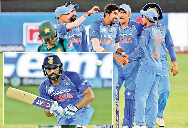 இந்த நிலையில் சூப்பர்-4 சுற்றில் துபாயில் நேற்று நடந்த ஆட்டத்தில் இந்தியா-பாகிஸ்தான் அணிகள் பலப்பரீட்சை நடத்தின. பாகிஸ்தான் அணியில் ஹாரிஸ் சோகைல், உஸ்மான் கான் ஆகியோருக்கு பதிலாக முகமது அமிர், ஷதப்கான் ஆகியோர் சேர்க்கப்பட்டனர். இந்திய அணியில் மாற்றம் எதுவும் செய்யப்படவில்லை.