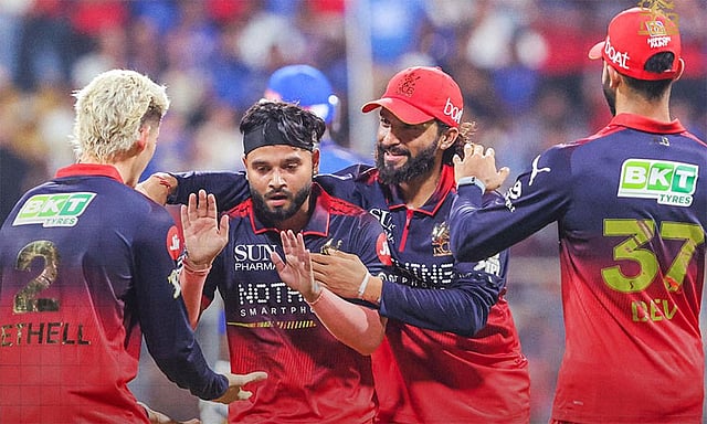 பின்னர் விராட் கோலியுடன் ஜோடி சேர்ந்த கேப்டன் ரஜத் படிதார் முதல் பந்தையே பவுண்டரிக்கு விரட்டினார். தொடர்ந்து மும்பை பந்துவீச்சை சிக்ஸருக்கும், பவுண்டரிக்கும் பறக்கவிட்டார். மறுமுனையில், நிதானமாக ஆடிய விராட் கோலி அரைசதம் அடித்து அவுட்டானார்.
