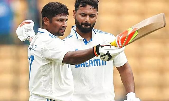 நியூசிலாந்து தரப்பில் ரச்சின் ரவீந்திரா 134 ரன், கான்வே 91 ரன், டிம் சவுதி 65 ரன் எடுத்தனர். இதையடுத்து 366 ரன்கள் பின்னிலையுடன் இந்திய அணி தனது 2வது இன்னிங்சை தொடங்கியது. இந்தியாவின் தொடக்க ஆட்டக்காரர்களாக ஜெய்ஸ்வால் மற்றும் ரோகித் சர்மா ஆகியோர் களம் இறங்கினர்.இதில் ஜெய்ஸ்வால் 35 ரன்னிலும், ரோகித் சர்மா அரைசதம் அடித்த நிலையில் 52 ரன்னிலும் அவுட் ஆகினர். தொடர்ந்து விராட் கோலி மற்றும் சர்பராஸ் கான் அரைசதம் அடித்து அசத்தினர். இதில் 3ம் நாள் ஆட்டத்தின் கடைசி பந்தில் கோலி 70 ரன் எடுத்த நிலையில் அவுட் ஆனார். இறுதியில் 3ம் நாள் ஆட்ட நேர முடிவில் இந்தியா தனது 2வது இன்னிங்சில் 49 ஓவர்களில் 3 விக்கெட்டை இழந்து 231 ரன்கள் எடுத்தது. இந்தியா தரப்பில் சர்பராஸ் கான் 70 ரன்னுடன் களத்தில் இருந்தார் . இன்று 4ம் நாள் ஆட்டம் நடைபெற்றது .சர்பராஸ் கானுடன் ரிஷப் பண்ட் இணைந்தார் . இருவரும் சிறப்பாக விளையாடினர் . குறிப்பாக சர்பராஸ் கான் பந்துகளை பவுண்டரி , சிக்ஸருக்கு பறக்க விட்டார். தொடர்ந்து சிறப்பாக ஆடிய சர்பராஸ் கான் சதமடித்து அசத்தினார். சர்வதேச டெஸ்ட் கிரிக்கெட்டில் இது அவரது முதல் சதமாகும்.
