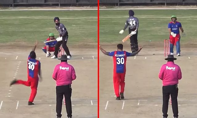 இதன்படி, இரு அணிகளும் விளையாடின. இதில், குவைத் அணியை சேர்ந்த பந்து வீச்சாளர் வீசிய பந்து, பேட்ஸ்மேனை நோக்கி சென்று, அவர் எதிர்பாராத வகையில் திடீரென திரும்பி ஸ்டம்பில் பட்டு அவரை அவுட்டாக்கி அதிர்ச்சியடைய வைத்தது. இதுபற்றிய வீடியோ ஒன்று வைரலாகி வருகிறது.