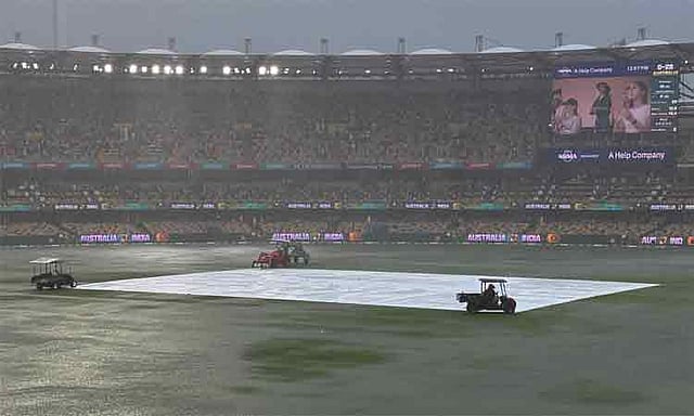 அரை மணி நேரத்திற்கு பிறகு மீண்டும் போட்டி தொடங்கியது. ஆட்டத்தின் 13-வது ஓவரை ஆகாஷ்தீப் வீசினார். அப்போது மீண்டும் மழை குறுக்கிட்டது. இதனால் ஆட்டம் மீண்டும் தடைபட்டது. மழை நின்ற பின் போட்டி மீண்டும் தொடங்கும் என எதிர்பார்க்கப்பட்டது. ஆனால் மழை விடாமல் தொடர்ந்து பெய்தது. இதனால், மைதானத்தின் அனைத்து பகுதிகளிலும் மழை நீர் தேங்கியதால் போட்டியை மீண்டும் நடத்த முடியாத சூழல் ஏற்பட்டது. எனவே முதல் நாள் ஆட்டத்தை முடித்துக்கொள்வதாக நடுவர்கள் அறிவித்தனர்.