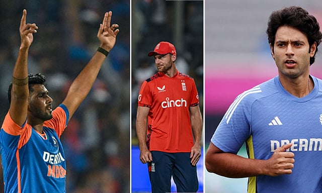இந்த ஆட்டத்தில் இந்திய ஆல்-ரவுண்டர் ஷிவம் துபே பேட் செய்தபோது, கடைசி ஓவரில் ஜாமி ஓவர்டான் வீசிய ஒரு பவுன்சர் பந்து அவரது ஹெல்மெட்டை பலமாக தாக்கியது. இன்னிங்ஸ் முடிந்ததும் ஷிவம் துபேவை பரிசோதித்தபோது தலைக்குள் லேசாக அதிர்வு இருப்பதாக உணர்ந்தார். இத்தகைய காயத்துக்கு மாற்று வீரரை அனுமதிக்கலாம் என்ற விதிப்படி வேகப்பந்து வீச்சாளர் ஹர்ஷித் ராணா இந்திய அணியில் சேர்க்கப்பட்டார். அவர் லிவிங்ஸ்டன், பெத்தேல், ஓவர்டான் ஆகியோரது விக்கெட்டை வீழ்த்தி வெற்றிக்கு உதவினார்.