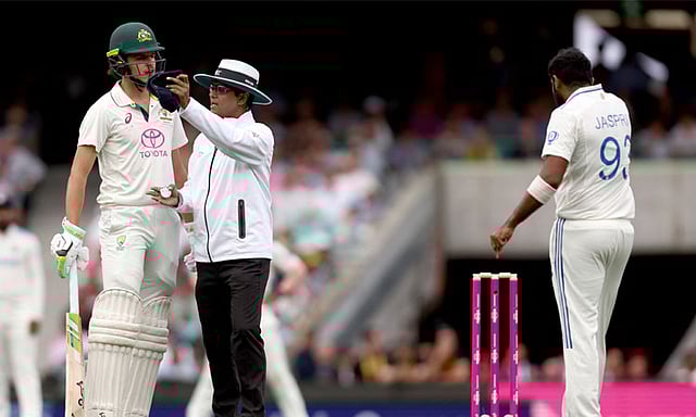 இந்தியா - ஆஸ்திரேலியா இடையிலான பார்டர் - கவாஸ்கர் கோப்பை தொடரின் 5-வது மற்றும் கடைசி டெஸ்ட் சிட்னியில் நடைபெற்று வருகிறது. இந்த டெஸ்டின் முதல் நாள் ஆட்டத்தின் இறுதி ஓவரை இந்திய கேப்டனும், வேகப்பந்து வீச்சாளருமான ஜஸ்பிரித் பும்ரா வீசினார். அவர் ஒரு பந்தை வீசுவதற்கு சில அடி ஓடி வந்தபோது, பேட்ஸ்மேன் கவாஜா இன்னும் தயாராகவில்லை என நடுவர் சிக்னல் காட்டினார். இதனால் அதிருப்தியடைந்த பும்ரா என்னப்பா இது.... என்பது போல் இரு கைகளையும் விரித்தபடி கேட்க, எதிர்முனையில் நின்ற இளம் பேட்ஸ்மேன் கான்ஸ்டாஸ் அவரை ஏதோ சொல்லி சீண்டினார்.