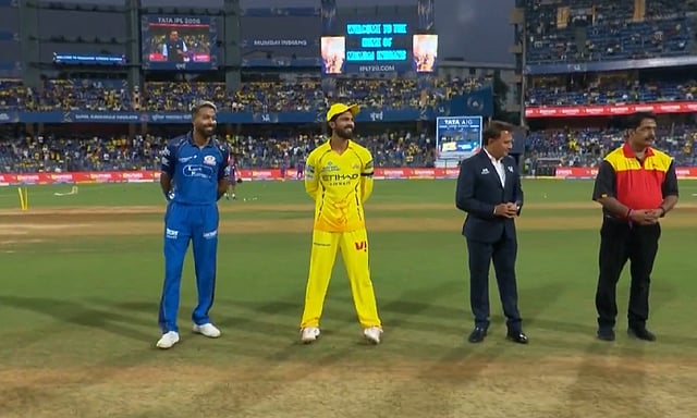 இந்த நிலையில் இந்த ஆட்டத்துக்கான டாஸ் போடப்பட்டது. இதில் டாஸ் வென்ற மும்பை இந்தியன்ஸ் அணியின் கேப்டன் ஹர்திக் பாண்ட்யா பந்துவீச்சை தேர்வு செய்தார். அதன்படி சென்னை சூப்பர் கிங்ஸ் அணி முதலில் பேட்டிங் செய்ய உள்ளது.