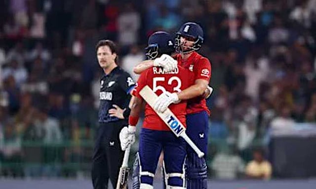 டி20 உலகக்கோப்பை தொடர் இந்தியா மற்றும் இலங்கையின் பல்வேறு நகரங்களில் நடந்து வருகிறது. லீக் சுற்றுகள் நிறைவடைந்துள்ள நிலையில், தற்போது சூப்பர் 8 சுற்று போட்டிகள் நடைபெற்று வருகின்றன. இதில் நேற்று நடைபெற்ற முக்கியமான ஆட்டத்தில் இங்கிலாந்து - நியூசிலாந்து அணிகள் விளையாடின. இந்த போட்டியில் டாஸ் வென்ற நியூசிலாந்து அணி பேட்டிங்கைத் தேர்வு செய்தது. அதன்படி இங்கிலாந்து அணி முதலில் பந்து வீசியது.