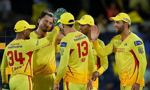 இதன் மூலம் நிர்ணயிக்கப்பட்ட 20 ஓவர்களில் டெக்சாஸ் சூப்பர் கிங்ஸ் அணி 4 விக்கெட்டுகளை இழந்து 223 ரன்கள் குவித்தது. டு பிளெஸ்சிஸ் 103 ரன்களுடன் ஆட்டமிழக்காமல் களத்தில் இருந்தார்.