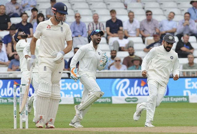 இந்தியா - இங்கிலாந்து அணிகள் இடையிலான 3-வது டெஸ்ட் கிரிக்கெட் போட்டி நாட்டிங்காமில் நடந்து வருகிறது. இதில் முதலில் பேட்டிங் செய்த இந்தியா 329 ரன்களில் ஆட்டம் இழந்தது. பின்னர் தனது முதல் இன்னிங்சை ஆடிய இங்கிலாந்து 161 ரன்னில் சுருண்டது. வேகப்பந்து வீச்சாளர் ஹர்திக் பாண்ட்யா 5 விக்கெட்டுகளை சாய்த்தார். அடுத்து 168 ரன்கள் முன்னிலையுடன் 2-வது இன்னிங்சை தொடங்கிய இந்திய அணி, கேப்டன் விராட் கோலியின் (103 ரன்கள்) அற்புதமான சதம், புஜாராவின் (72 ரன்கள்) நேர்த்தியான ஆட்டத்தின் உதவியால் ரன்மழை பொழிந்தது.