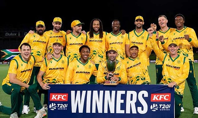 இந்த நிலையில் இரு அணிகளுக்கும் இடையேயான 5வது போட்டி நேற்று நடைபெற்றது. முதலில் பேட்டிங் செய்த தென் ஆப்பிரிக்கா அணி 20 ஓவர்கள் முடிவில் 4 விக்கெட் இழப்பிற்கு 187 ரன்கள் எடுத்தது. தென் ஆப்பிரிக்கா அணியில் கானர் எஸ்டர்ஹூய்ஸ் 75 ரன்கள் எடுத்தார்.