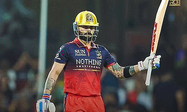 முன்னதாக, ஆர்.சி.பி அணியின் நட்சத்திர வீரர் கோலி அவுட் ஆகி செல்லும் போது ஹெல்மெட்டை தூக்கி எறிந்த காட்சிகள் இணையத்தில் வைரலாகி வருகின்றன. இத்தனைக்கும் கோலி அரைசதம் அடித்திருந்தார். சிறப்பாக விளையாடிய போதும் அவர் அவுட் ஆனது கடும் டென்ஷனுக்குக் காரணம், மந்தமாக விளையாடியதே என்று சொல்லப்படுகிறது. அதாவது 38 பந்துகளில் விராட் கோலி 50 ரன்கள் எடுத்தார். அவரது ஸ்டிரைக் ரேட் 131.58 ஆக இருந்தது. மெதுவாக விளையாடிய விராட் கோலி, அரைசதம் அடித்ததும் அதிரடி காட்டி ஸ்டிரைக் ரேட்டை உயர்த்தலாம் என்று நினைத்த நிலையில், அவுட் ஆனது அவருக்கு பெரும் ஏமாற்றத்தை கொடுத்திருக்கலாம். இதனாலேயே கோபத்தை வெளிப்படுத்தும் விதமாக ஹெல்மெட்டை டக் அவுட் பகுதியில் தூக்கி வீசியதாக ரசிகர்கள் கமெண்ட் செய்து வருகின்றனர்.