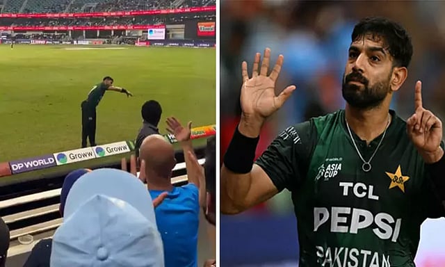 அந்த போலியான செய்தியை வைத்துக்கொண்டு 6 விமானங்கள் வீழ்த்தப்பட்டது மறந்து விட்டதா? என்ற வகையில் ஹாரிஸ் ரவூப் சைகை செய்தார். அதைப் பார்த்த இந்திய ரசிகர்கள் கோலி.. கோலி.. என்று கூச்சலிட்டு அவருக்கு மீண்டும் பதிலடி கொடுத்தனர். இந்த வீடியோ இணையத்தில் வைரலாகி வருகிறது.