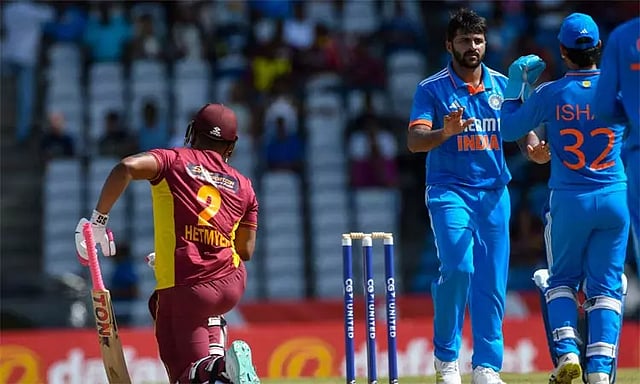 இறுதியில் மொட்டி 39 ரன்களுடன் கடைசிவரை ஆட்டமிழக்காமல் களத்தில் இருந்தார். முடிவில் வெஸ்ட் இண்டீஸ் அணி 35.3 ஒவர்களில் அனைத்து விக்கெட்டுகளையும் இழந்து 151 ரன்கள் மட்டுமே எடுத்தது. இந்திய அணியின் சார்பில் சிறப்பாக பந்து வீசிய ஷர்துல் தாக்கூர் 4 விக்கெட்டுகளும், முகேஷ் குமார் 3 விக்கெட்டுகளும், குல்தீப் யாதவ் 2 விக்கெட்டுகளும், உனத்கட் தலா ஒரு விக்கெட்டும் வீழ்த்தினர்.