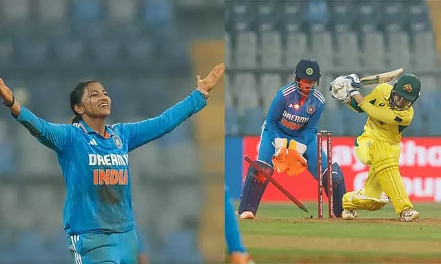 ஆஸ்திரேலிய பெண்கள் கிரிக்கெட் அணி இந்தியாவில் சுற்றுப்பயணம் மேற்கொண்டு விளையாடி வருகிறது. மும்பையில் நடந்த ஒரே டெஸ்டில் இந்தியா 8 விக்கெட் வித்தியாசத்தில் ஆஸ்திரேலியாவை முதல்முறையாக தோற்கடித்து வரலாறு படைத்தது. தொடர்ந்து 3 ஒரு நாள் மற்றும் மூன்று 20 ஓவர் போட்டிகள் மும்பையில் நடக்க உள்ளன. இதில் இந்தியா - ஆஸ்திரேலியா பெண்கள் அணிகள் இடையிலான முதலாவது ஒரு நாள் கிரிக்கெட் போட்டி மும்பை வான்கடே ஸ்டேடியத்தில் நேற்று நடைபெற்றது.
