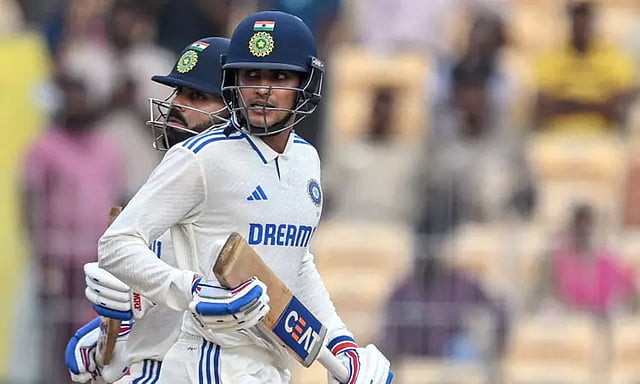 பின்னர் கில்லுடன் கை கோர்த்த விராட் கோலி சிறிது நேரம் போராடி அணியை சரிவிலிருந்து மீட்கும் முயற்சியில் ஈடுபட்டார். இருப்பினும் 37 பந்துகளை சந்தித்த அவர் 17 ரன்களில் ஆட்டமிழந்தார். ஒருபுறம் விக்கெட் சரிந்தாலும் மறுமுனையில் சுப்மன் கில் நிலைத்து விளையாடினார்.