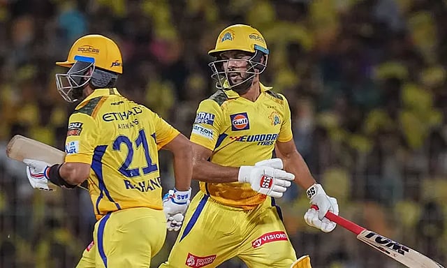 அதன்படி முதலில் பேட்டிங் செய்ய களமிறங்கிய சென்னை அணியின் தொடக்க ஆட்டக்காரர்களாக ரகானே மற்றும் கெய்க்வாட் ஆகியோர் களமிறங்கினர். இருவரும் இணைந்து சென்னை அணிக்கு நல்ல தொடக்கம் கொடுத்தனர். முதல் விக்கெட்டுக்கு 64 ரன்கள் சேர்த்த நிலையில் இந்த ஜோடி பிரிந்தது. ரகானே 29 ரன்களில் ஆட்டமிழந்தார்.