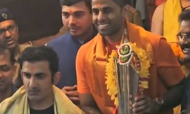 இந்த நிலையில், மும்பையில் உள்ள சித்தி விநாயகர் கோவிலில் இந்திய அணி தலைமை பயிற்சியாளர் கம்பீர் , கேப்டன் சூர்யகுமார் யாதவ் உள்ளிட்டோர் உலகக் கோப்பையுடன் சென்று சாமி தரிசனம் செய்தனர்.