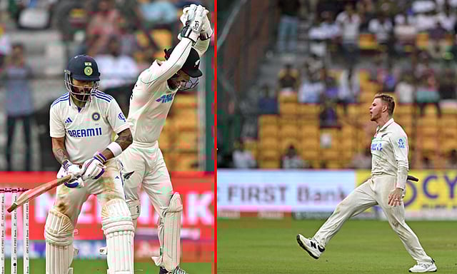 முன்னதாக இந்த போட்டியின் 2வது இன்னிங்சில் சர்பராஸ் கானுடன் சேர்ந்து பார்ட்னர்ஷிப் அமைத்த விராட் கோலி 70 ரன்கள் குவித்து இந்தியாவை தூக்கி நிறுத்த போராடினார். ஆனால் அப்போது 3வது நாளின் கடைசி பந்தில் நியூசிலாந்தின் பகுதி நேர பவுலரான கிளென் பிலிப்ஸ் சுழலில் விராட் கோலி அவுட்டானது இந்தியாவுக்கு பெரிய பின்னடைவை கொடுத்தது. மறுபுறம் விராட் கோலியின் விக்கெட்டை எடுத்த பிலிப்ஸ் அதை வெறித்தனமாக கொண்டாடினார்.