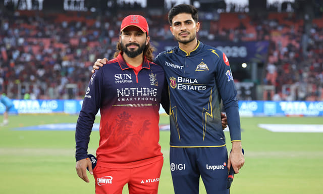 இந்த போட்டிக்கான டாஸ் போடப்பட்டது. அதி டாஸ் வென்ற குஜராத் அணியின் கேப்டன் கில் பந்துவீச்சை தேர்வு செய்தார். அதன்படி பெங்களூரு அணி முதலில் பேட்டிங் செய்கிறது.