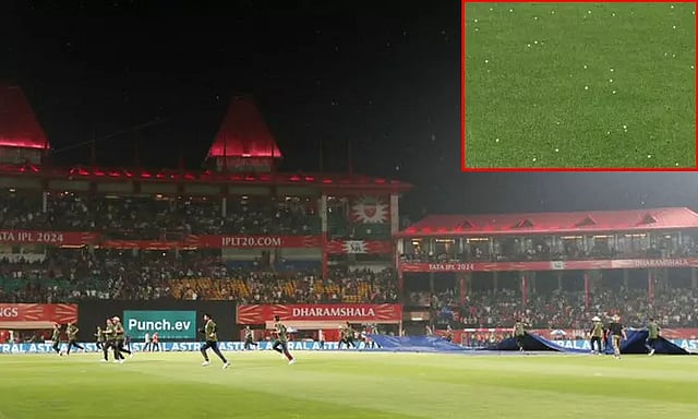 பெங்களூரு அணி 10 ஓவர்களில் 3 விக்கெட் இழப்புக்கு 119 ரன்கள் எடுத்திருந்தபோது திடீரென மழை குறுக்கிட்டது. அத்துடன் சிறிது நேரம் ஆலங்கட்டி மழை பெய்தது. இதனால் ஆட்டம் சிறிது நேரம் நிறுத்தப்பட்டது. சுமார் 15 நிமிடங்கள் ஆலங்கட்டி மழை பெய்தது. மழை காரணமாக அரை மணி நேரம் பாதிக்கப்பட்ட ஆட்டம், தற்போது மீண்டும் தொடங்கி நடைபெற்று வருகிறது.