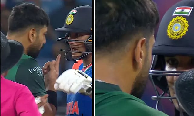 பின்னர் அதே ஓவரின் கடைசி பந்தை எதிர்கொண்ட மற்றொரு தொடக்க ஆட்டக்காரர் ஆன சுப்மன் கில் அதை பவுண்டரிக்கு ஓட விட்டார். இதனால் ஹாரிஸ் ரவூப் ஏதோ கூற மறுமுனையில் இருந்த அபிஷேக் சர்மா கடுப்பானார். அத்துடன் ஹாரிஸ் ரவூப் உடன் வார்த்தை மோதலில் ஈடுபட்டார். பின்னர் நடுவர் உள்ளே புகுந்து இருவரையும் சமாதானம் செய்தார். இந்த வீடியோ வைரலாகி வருகிறது.