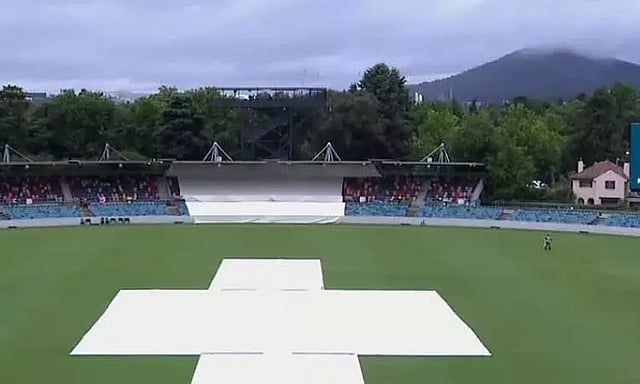 தொடர்ந்து மழை பெய்ததால் போட்டியை தொடங்க முடியவில்லை இதனால் முதல் நாள் ஆட்டம் ரத்து செய்யப்பட்டது. நாளை 2வது நாள் ஆட்டம் நடைபெற உள்ளது.