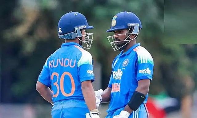 இதையடுத்து களமிறங்கிய இந்தியா 46.1 ஓவரில் அனைத்து விக்கெட்டுகளையும் இழந்து 240 ரன்கள் எடுத்தது. இந்தியா தரப்பில் அரோன் ஜார்ஜ் அதிகபட்சமாக 85 ரன்கள் குவித்தார்.