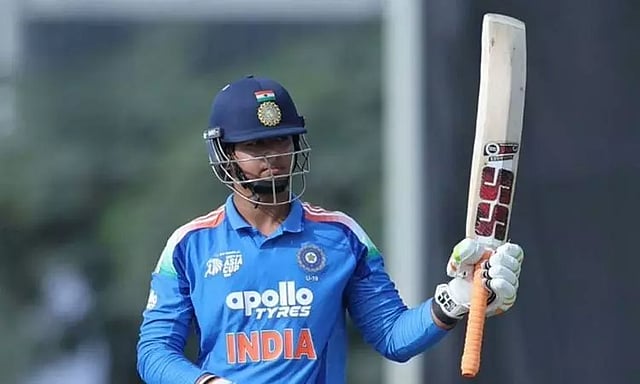 இதில் டாஸ் வென்ற ஐக்கிய அரபு அமீரகம் முதலில் பந்து வீச்சை தேர்வு செய்தது. இதையடுத்து இந்திய அணியின் தொடக்க வீரர்களாக ஆயுஷ் மாத்ரே, வைபவ் சூர்யவன்ஷி களமிறங்கினர். மாத்ரே 4 ரன்னில் அவுட் ஆனார். அடுத்து வந்த ஜார்ஜ் உடன் ஜோடி சேர்ந்த சூர்யவன்ஷி மிரட்டல் ஆட்டத்தை வெளிப்படுத்தினார். ஜார்ஜ் 69 ரன்களில் ஆட்டமிழந்தார். அடுத்து வந்த மல்ஹோத்ராவும் சிறப்பான ஆட்டத்தை வெளிப்படுத்தி 69 ரன்கள் குவித்தார்.