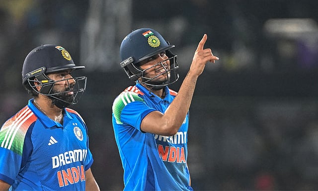 இதனையடுத்து இலக்கை நோக்கி களமிறங்கிய இந்தியா அதிரடியாக விளையாடியது. இந்தியா 6.1 ஓவர்களில் விக்கெட் இழப்பின்றி 48 ரன்கள் அடித்திருந்தபோது போதிய வெளிச்சமின்மை காரணமாக ஆட்டம் தற்காலிகமாக நிறுத்தப்பட்டது. ரோகித் 29 ரன்களுடனும், கில் 17 ரன்களுடனும் களத்தில் இருந்தனர்.