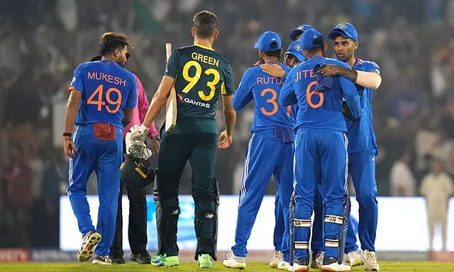 மறுமுனையில் அதிரடியாக ஆடிய ரிங்கு சிங் 46 ரன்னில் அவுட் ஆனார். இறுதியில் இந்திய அணி 20 ஓவர் முடிவில் 9 விக்கெட் இழப்புக்கு 174 ரன்கள் எடுத்தது. இதையடுத்து 175 ரன்கள் எடுத்தால் வெற்றி என்ற இலக்குடன் ஆஸ்திரேலியா அணி களமிறங்கியது.