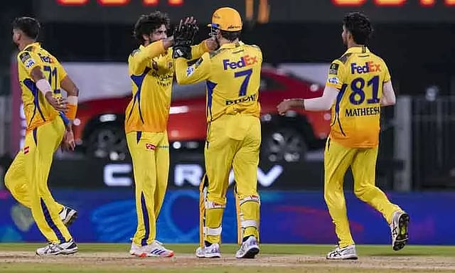 ஐ.பி.எல். தொடரில் நேற்றிரவு சென்னை சேப்பாக்கத்தில் உள்ள எம்.ஏ.சிதம்பரம் ஸ்டேடியத்தில் நடந்த 43-வது லீக் ஆட்டத்தில் சென்னை சூப்பர் கிங்ஸ் - சன்ரைசர்ஸ் ஐதராபாத் அணிகள் மோதின. இதில் டாஸ் வென்ற ஐதராபாத் அணியின் கேப்டன் கம்மின்ஸ் பந்துவீச்சை தேர்வு செய்தார்.