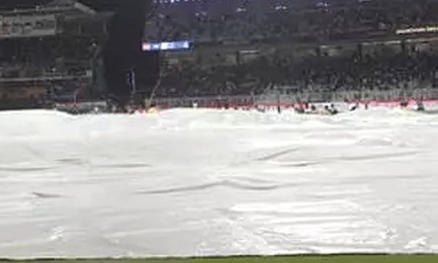 இந்த நிலையில், எதிர்பாராத விதமாக தற்போது மைதானத்தில் மழை பெய்து வருகிறது. இதன் காரணமாக ஆட்டத்தில் இரண்டாம் பாதி தொடங்குவதில் தாமதம் ஏற்பட்டுள்ளது. மழை நின்ற பின் போட்டி மீண்டும் தொடங்கும் என அறிவிக்கப்பட்டுள்ளது.