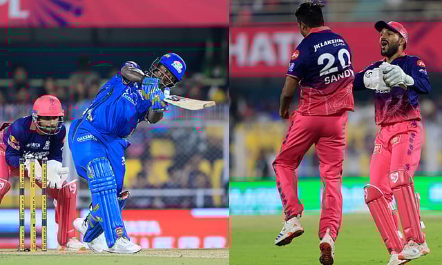 மறுமுனையில் சிறப்பாக விளையாடிய ஜெய்ஸ்வால், அரைசதம் கடந்தார். இறுதியில் ராஜஸ்தான் அணி 11 ஓவர்கள் முடிவில் 3 விக்கெட் இழப்புக்கு 150 ரன்கள் எடுத்தது. ஜெய்ஸ்வால் 32 பந்துகளில் 10 பவுண்டரி, 4 சிக்சருடன் 77 ரன்கள் எடுத்து கடைசி வரை களத்தில் இருந்தார். இதையடுத்து 151 ரன்கள் எடுத்தால் வெற்றி என்ற இலக்குடன் களமிறங்கிய மும்பை அணிக்கு தொடக்கமே அதிர்ச்சி காத்திருந்தது. ரிக்கல்டன் (8), ரோகித் சர்மா (5), சூர்யகுமார் யாதவ் (6) திலக் வர்மா (14), ஹர்திக் பாண்ட்யா (9) ஆகியோர் அடுத்தடுத்து ஆட்டமிழந்தனர். இதனால் மும்பை அணி 46 ரன்களுக்கு 5 முக்கிய விக்கெட்டுகளை இழந்து திணறியது.