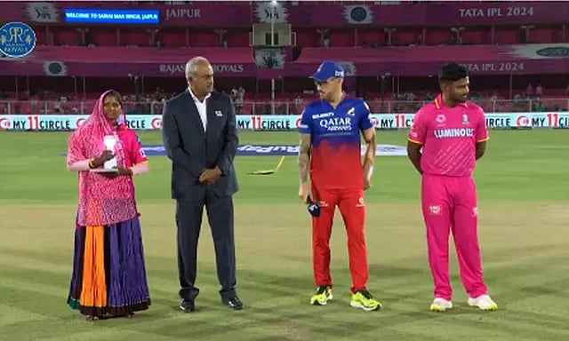 இந்த ஆட்டத்திற்கான டாஸ் சுண்டப்பட்டது. அதில் டாஸ் வென்ற ராஜஸ்தான் ராயல்ஸ் அணியின் கேப்டன் சஞ்சு சாம்சன் பந்துவீச்சை தேர்வு செய்தார். அதன்படி பெங்களூரு முதலில் பேட்டிங் செய்ய உள்ளது.
