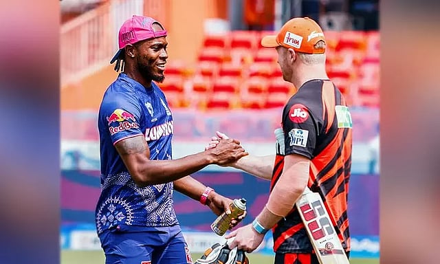 ஐதராபாத்தின் தொடக்க வீரர்களாக டிராவிஸ் ஹெட் மற்றும் அபிஷேக் சர்மா களம் இறங்கினர். இதில் அபிஷேக் சர்மா 24 ரன்னில் அவுட் ஆனார். தொடர்ந்து இஷான் கிஷன் களம் இறங்கினர். டிராவிஸ் ஹெட் - இஷான் கிஷன் இணை அதிரடியாக ஆடியது. இந்த இணை ராஜஸ்தானின் பந்துவீச்சை அடித்து நொறுக்கியது. அதிரடியாக ஆடிய இருவரும் அரைசதம் அடித்து அசத்தினர்.