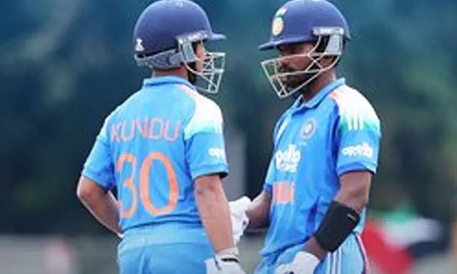 அதன்படி முதலில் களமிறங்கிய இந்திய அணி அதிரடியாக விளையாடியது. இந்திய அணியில் ஆயுஷ் மாத்ரே , ஆரோன் ஜார்ஜ் , கான்ஷிக் சவுகான் ஆகியோர் சிறப்பாக விளையாடினர் ஆயுஷ் மாத்ரே 38 ரன்களும், கான்ஷிக் சவுகான் 46 ரன்களும் எடுத்து ஆட்டமிழந்தனர். ஆரோ ஜார்ஜ் அரைசதமடித்து 85 ரன்களும் எடுத்து ஆட்டமிழந்தார். மற்ற வீரர்கள் சொற்ப ரன்களில் ஆட்டமிழந்தனர்.