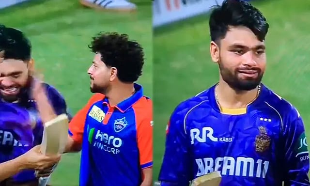 தொடர்ந்து இந்த போட்டி முடிந்த பின்னர் வழக்கம் போல இரு அணி வீரர்களும் ஒருவரை ஒருவர் சந்தித்து பேசிக் கொண்டிருந்தனர். அந்த வகையில் கொல்கத்தா அணியின் இளம் வீரர் ரிங்கு சிங், டெல்லி அணியின் மூத்த வீரர் குல்தீப் யாதவ் ஆகியோர் பவுண்டரி எல்லை அருகே நின்று பேசிக் கொண்டிருந்தனர்.