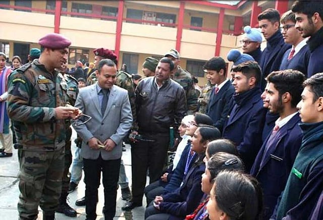 இந்திய கிரிக்கெட் அணியின் நட்சத்திர வீரரும் விக்கெட் கீப்பர் பேட்ஸ்மேனுமான டோனி நேற்று மாலை காஷ்மீரில் உள்ள ராணுவ பள்ளிக்கு திடீரென சென்றார். டெஸ்ட் போட்டிகளில் இருந்து ஓய்வு பெற்றுள்ளதால், தற்போது ஓய்வில் உள்ள டோனி, பள்ளிக்கு சென்று மாணவர்களுடன் கலந்துரையாடினார். டோனியின் எதிர்பாராத வருகையால் மாணவர்கள் இன்ப அதிர்ச்சி அடைந்தனர். மாணவர்களிடம் கல்வி, விளையாட்டு ஆகிய இரண்டின் முக்கியத்துவம் பற்றி டோனி உரையாடியாதாக தெரிவிக்கப்பட்டுள்ளது.