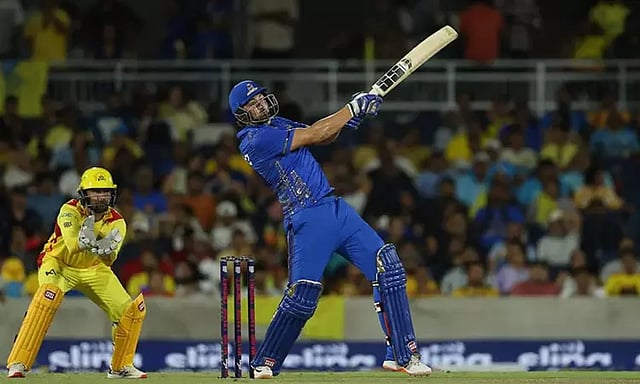 எம்.ஐ. அணியின் தொடக்க ஆட்டக்காரர்களாக களம் இறங்கிய ஜஹாங்கீர் 36 ரன், ஸ்டேடன் 6 ரன், அடுத்து களம் இறங்கிய பூரன் 23 ரன் எடுத்து ஆட்டம் இழந்தனர். அடுத்து களம் இறங்கிய டெவால்ட் பிரெவிஸ் இறுதி வரை ஆட்டம் இழக்காமல் அணியை வெற்றிக்கு அழைத்து சென்றார்.