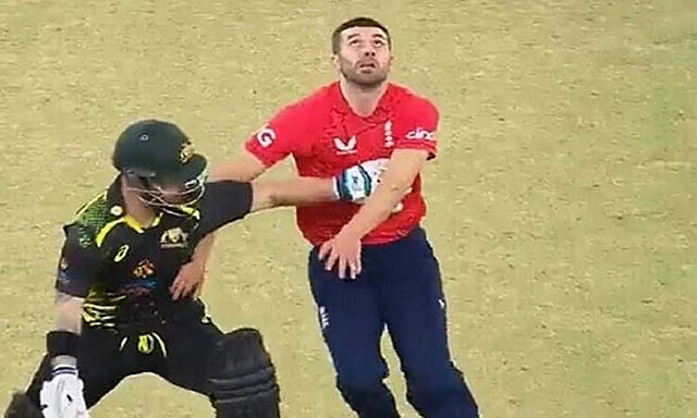 ஒரு புறம் மார்க் வுட் தன்னிடம் வந்த கேட்ச்-ஐ பிடிப்பதற்காக முற்பட்டார். மற்றொருபுறம் மேத்யூ வேட் பாதி களத்திற்கு ரன் ஓட முயன்றுவிட்டு ரன் அவுட் ஆகிவிடுவோமோ என்ற அச்சத்தில் மீண்டும் தன் இடத்திற்கு திரும்பினார். அப்போது மார்க் வுட்டை கேட்ச் பிடிக்கவே விடாமல் இழுத்துப்பிடித்து தடுத்தார். இதனால் அந்த கேட்ச் மிஸ்ஸானது.