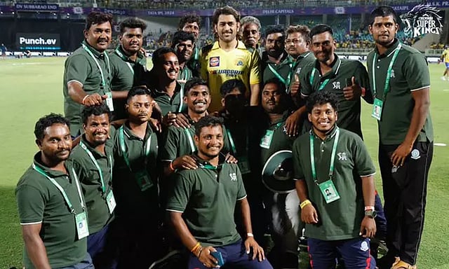 இந்நிலையில் இந்த போட்டி முடிவுற்ற பின்னர் விசாகப்பட்டின மைதான ஊழியர்கள் தோனியுடன் புகைப்படம் எடுத்து கொண்டுள்ளனர். தற்போது இந்த புகைப்படம் சமூக வலைத்தளங்களில் வைரலாகி வருகிறது.