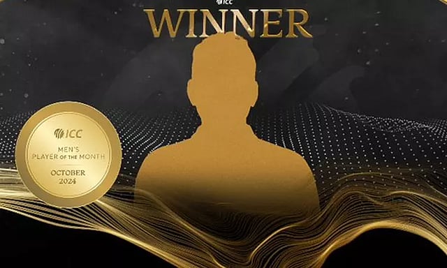 இந்நிலையில், அக்டோபர் மாதத்திற்கான சிறந்த வீரர் மற்றும் வீராங்கனை விருதை வென்றவர்கள் விவரங்களை சர்வதேச கிரிக்கெட் கவுன்சில் (ஐ.சி.சி.) வெளியிட்டது. அதன்படி, ஐ.சி.சி-யின் அக்டோபர் மாதத்திற்கான சிறந்த வீரர் விருதை பாகிஸ்தானின் நோமன் அலியும், அக்டோபர் மாதத்திற்கான சிறந்த வீராங்கனை விருதை நியூசிலாந்தின் மெலி கெர்ரும் வென்றுள்ளனர்.