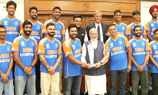 இந்த நிலையில், இந்திய அணி வீரர்கள் டெல்லியில் இன்று பிரதமர் மோடியை சந்தித்தனர். உலகக்கோப்பையை வென்ற இந்திய அணி வீரர்களுக்கு பிரதமர் மோடி வாழ்த்து தெரிவித்தார்,இதனை தொடர்ந்து இன்று மாலை மும்பையில் இந்திய வீரர்கள் பேரணியாக, திறந்த வெளி பஸ்ஸில் டி20 உலகக்கோப்பையுடன் வலம் வருவார்கள் என தெரிவிக்கப்பட்டுள்ளது.