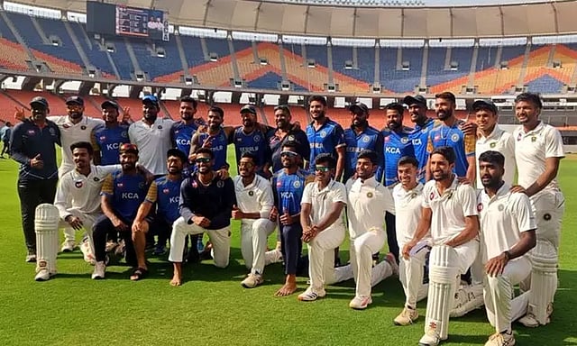 90-வது ரஞ்சி கோப்பை கிரிக்கெட் போட்டி இறுதிகட்டத்தை எட்டி விட்டது. இந்த தொடரின் லீக் மற்றும் காலிறுதி ஆட்டங்களின் முடிவில் குஜராத், கேரளா, மும்பை, விதர்பா அணிகள் அரையிறுதிக்கு முன்னேறின. அரையிறுதி ஆட்டங்கள் கடந்த 17ம் தேதி தொடங்கின. இதில் அகமதாபாத்தில் நடைபெற்ற முதலாவது அரையிறுதி ஆட்டத்தில் கேரளா - குஜராத் அணிகள் மோதின.