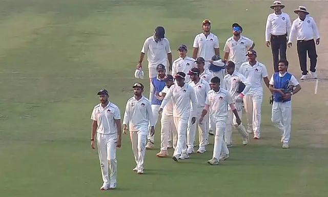 தொடர்ந்து முதல் இன்னிங்சை ஆடிய மும்பை அணி 315 ரன்கள் குவித்தது. மும்பை தரப்பில் அதிகபட்சமாக தனுஷ் கோட்யான் 97 ரன்னும், ஷாம்ஸ் முலானி 91 ரன்னும் எடுத்தனர். இதையடுத்து தனது முதல் இன்னிங்சை ஆடிய அரியானா அணி 301 ரன்களுக்கு ஆல் அவுட் ஆனது. அரியானா தரப்பில் அதிகபட்சமாக அன்கித் குமார் 136 ரன்கள் எடுத்தார்.
