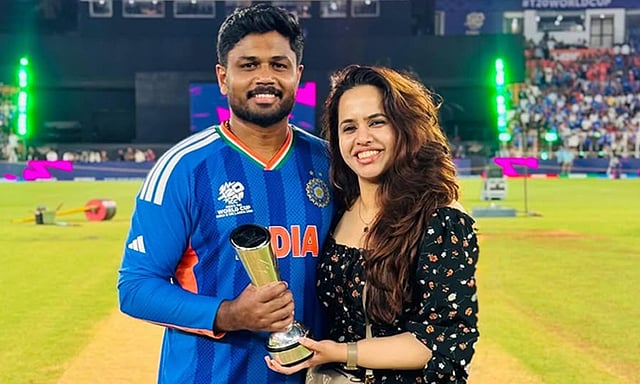 இந்திய அணி 2026 டி20 உலகக் கோப்பையை வென்றதில் மிக முக்கியப் பங்காற்றியவர் சஞ்சு சாம்சன். தொடர் நாயகன் விருது வென்று அசத்திய இவர், தனது வெற்றிக்குப் பக்கபலமாக இருந்த தனது மனைவிக்கு நன்றி தெரிவித்து வெளியிட்டுள்ள பதிவு ரசிகர்களை கவர்ந்துள்ளது.