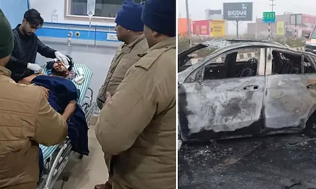 டெல்லி-டேராடூன் நெடுஞ்சாலையில் மங்க்ரூர் பகுதி அருகே திடீரென்று கார் கட்டுப்பாட்டை இழந்து தாறுமாறாக ஓடி சாலை தடுப்பில் மோதியது. இதில் சாலை தடுப்புகளை உடைத்து கொண்டு கார் சில அடி தூரம் சென்று நின்றது.